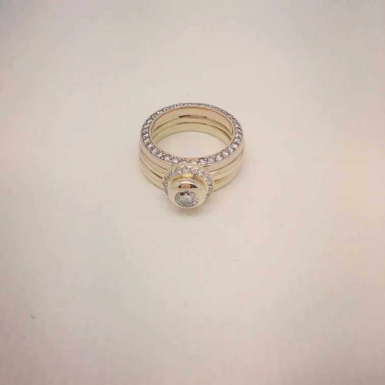 3 Ringe mit Brillanten in 750/000 Gelbgold