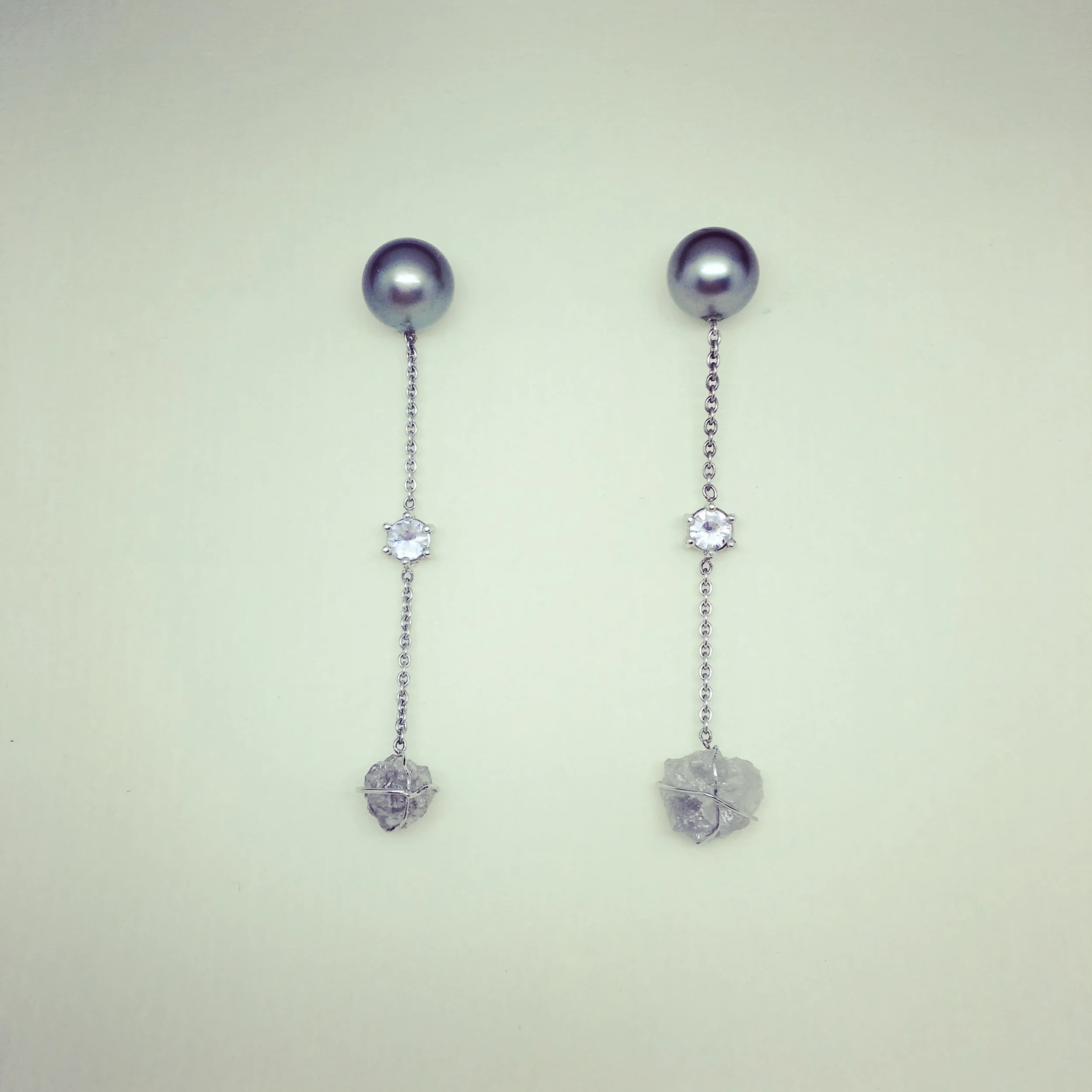 Ohrhänger mit Perlen, Saphiren und Rohdiamanten in 750/000 Weißgold