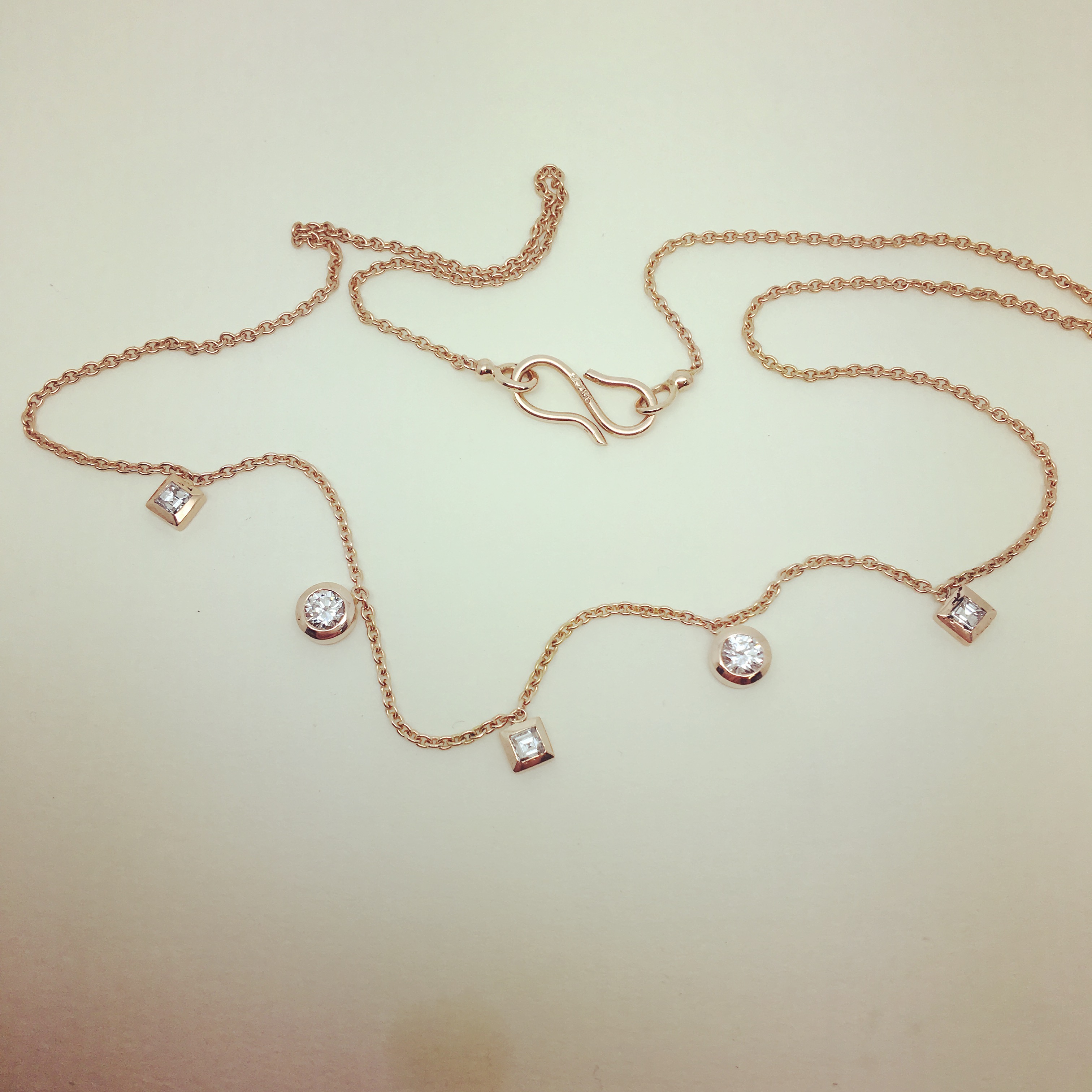 Kette mit Brillanten und Diamant Carrees in 750/000 Rotgold