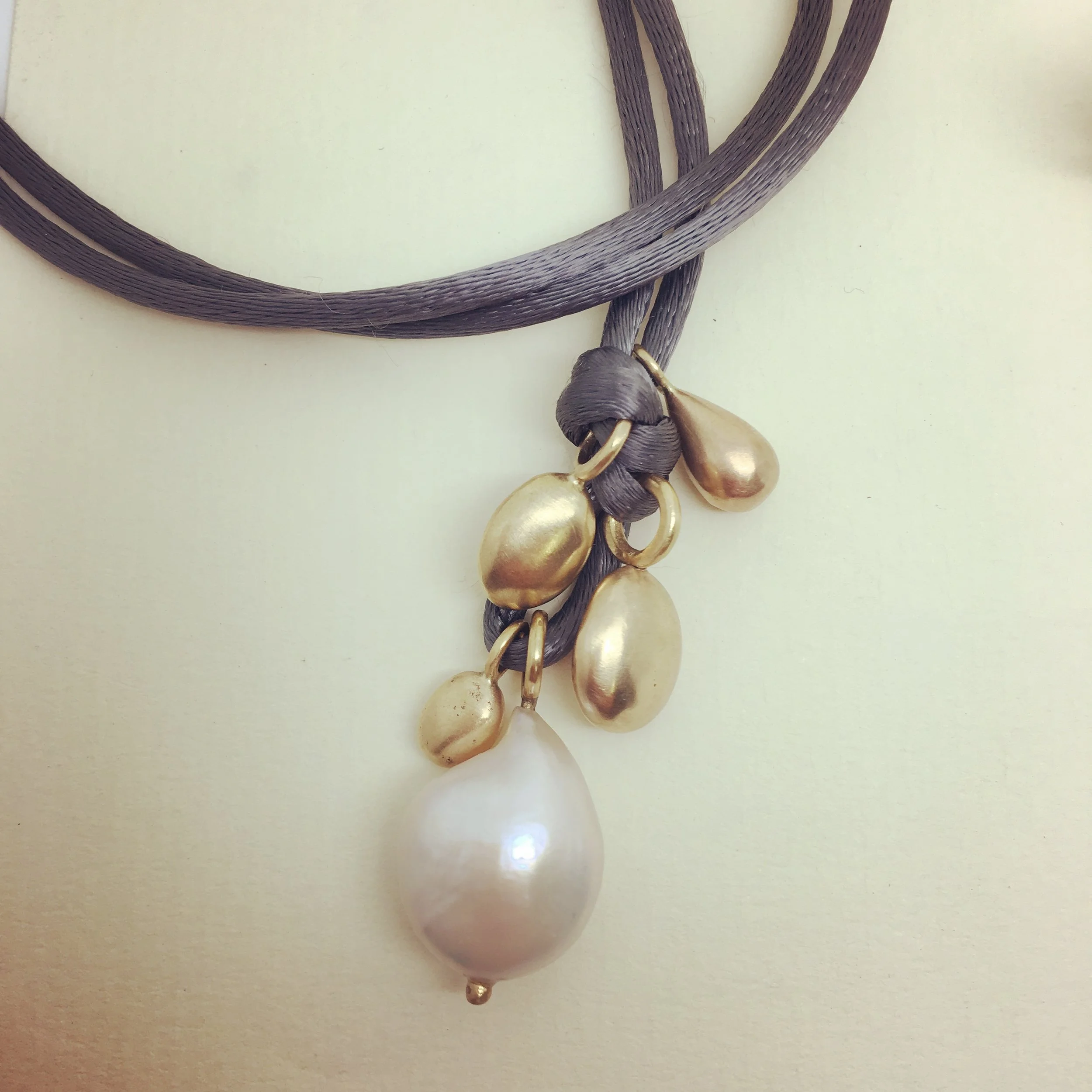 Anhänger mit Nuggets in 750/000 Gold und Perle