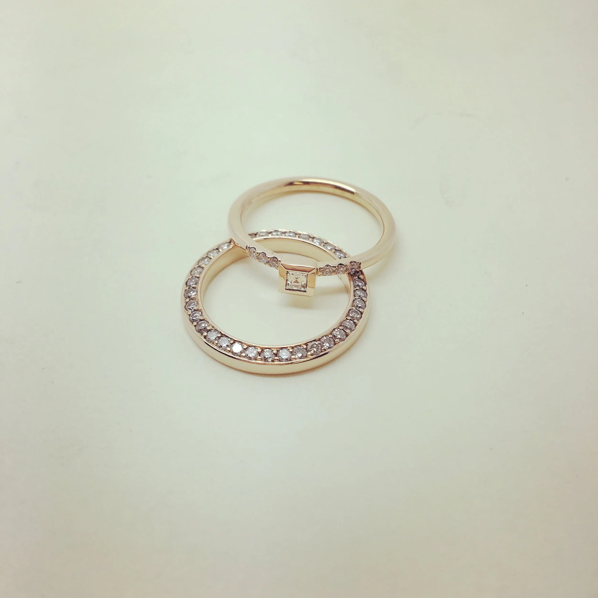 Ringe mit CarreeDiamant und Brillanten in 750/000 Gold