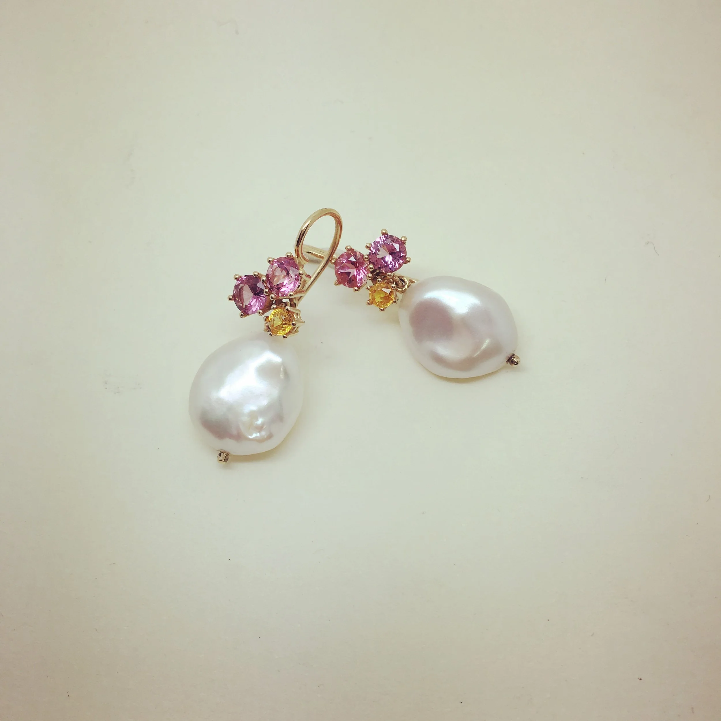 Ohrhänger mit Spinellen, Turmalinen und Perlen in 750/000 Rotgold