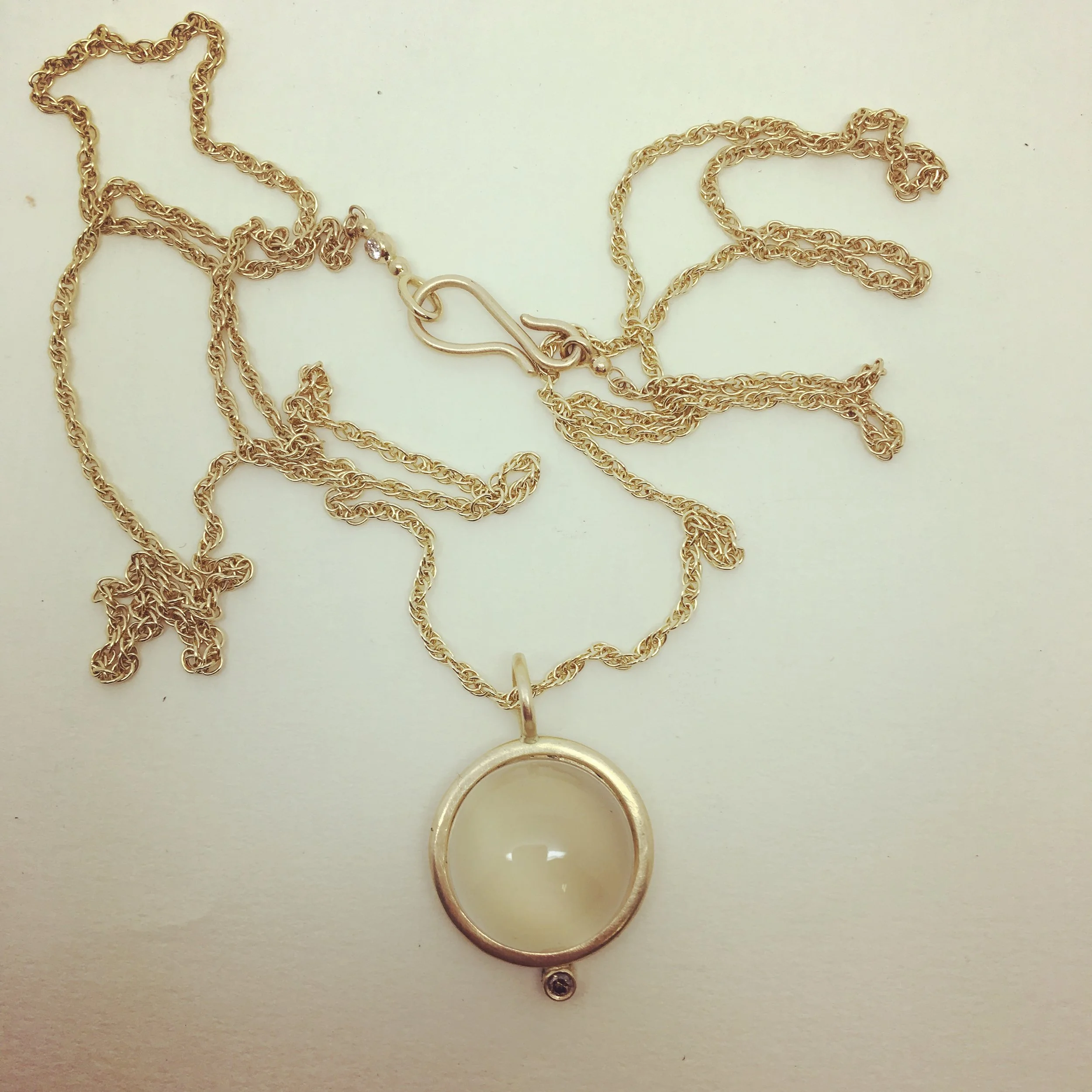 Kette mit Anhänger und einem Mondstein in 750/000 Rotgold