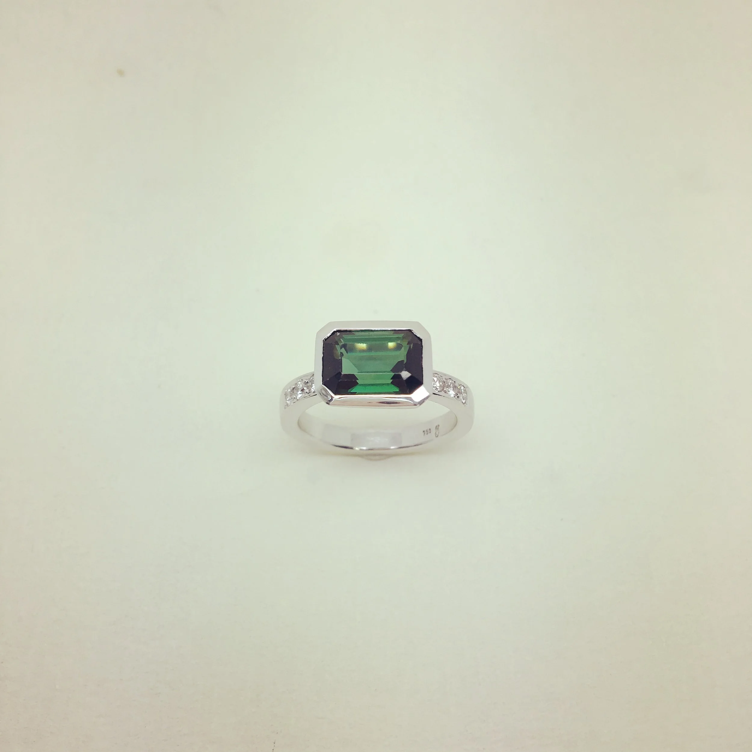 Ring mit Turmalin und Brillanten in 750/000 Weißgold
